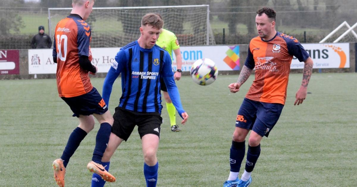 The opening half saw Armagh largely dominant but unable to make a breakthrough, their closest effort having been a header by Conor Mullen which went narrowly wide although the striker looked to have been taken out by the visitors’ ‘keeper who escaped punishment. So, a scoreless first 45 minutes.