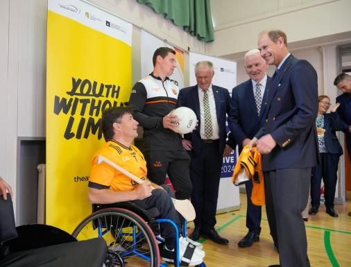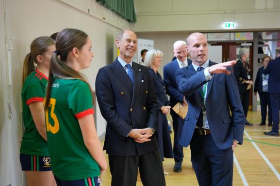 The Duke watched pupils demonstrate their chosen Physical section activities including Gaelic football, hurling and camogie, delivered in partnership with the Ulster Gaelic Athletic Association. He was also presented with an Ulster GAA jersey.