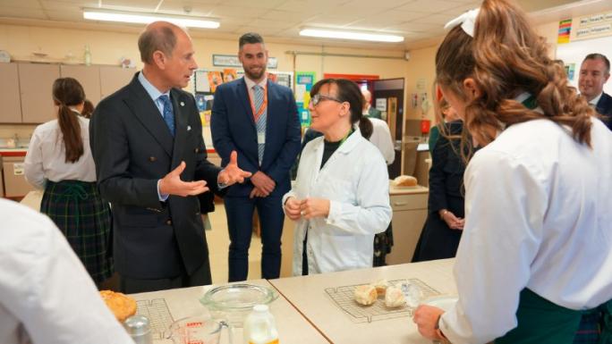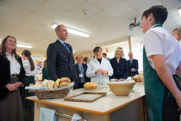 The Duke joined young people who have chosen baking for their Skill section to make some soda bread, before moving outside where he met participants who are learning to play traditional Irish instruments for their Skills section.