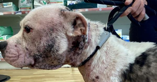 A vet examined the dog and concluded it was suffering severely from a skin condition and was in a lot of pain.