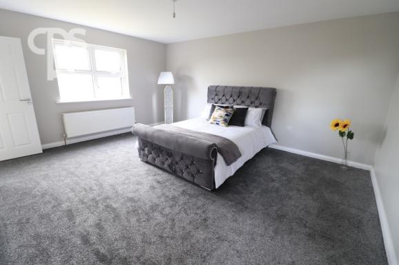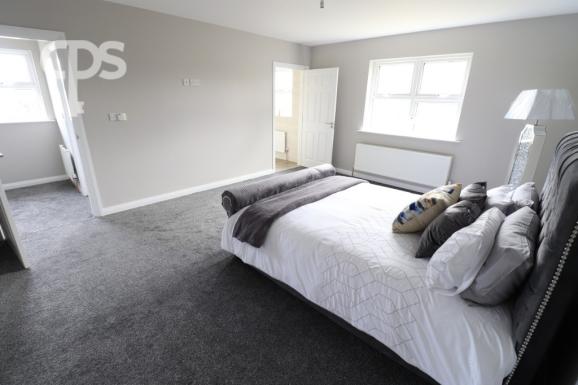 Large double bedroom offering ample wardrobe space, TV point, carpeted flooring and a three piece en-suite comprising of WC, wash hand basin and shower.